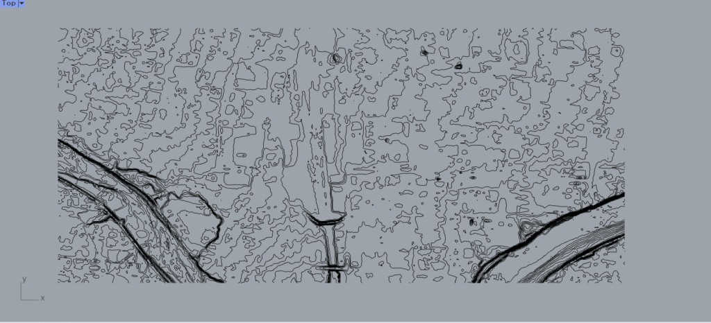 いよいよ、Rhinocerousで等高線図を開いていきます。