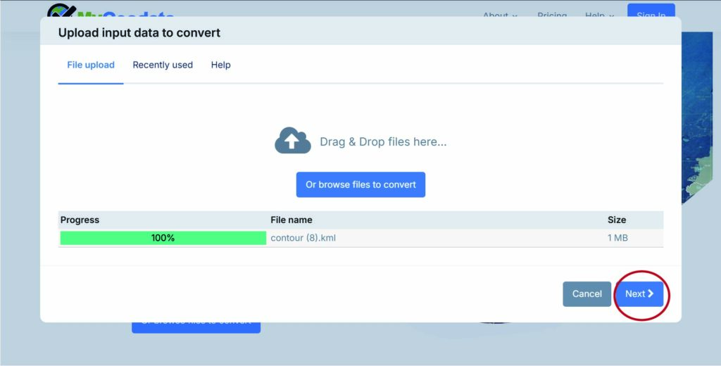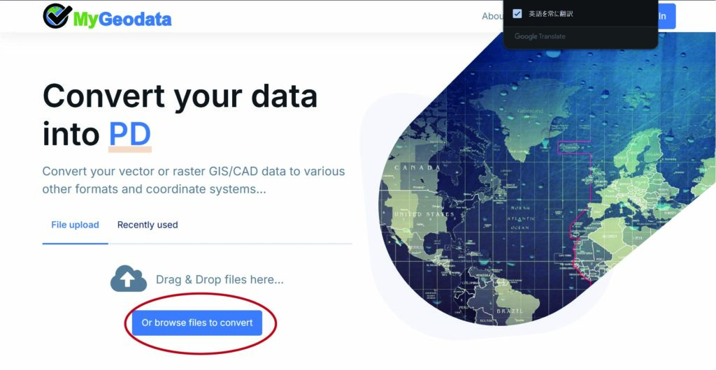 取得したKMLファイルをRhinocerosで扱えるDXF形式に変換します。変換には以下のサイトを使います。(DXFに変換できればなんでも大丈夫です)