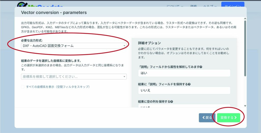 2. KMLファイルをDXFに変換