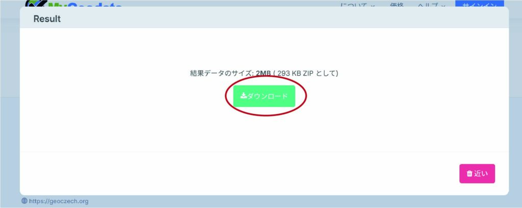 等高線が取得出来たら、その下の「KMLファイルを取得」をクリックしてください。自動的にKMLファイルがダウンロードされます。(このファイル形式がかなり厄介)